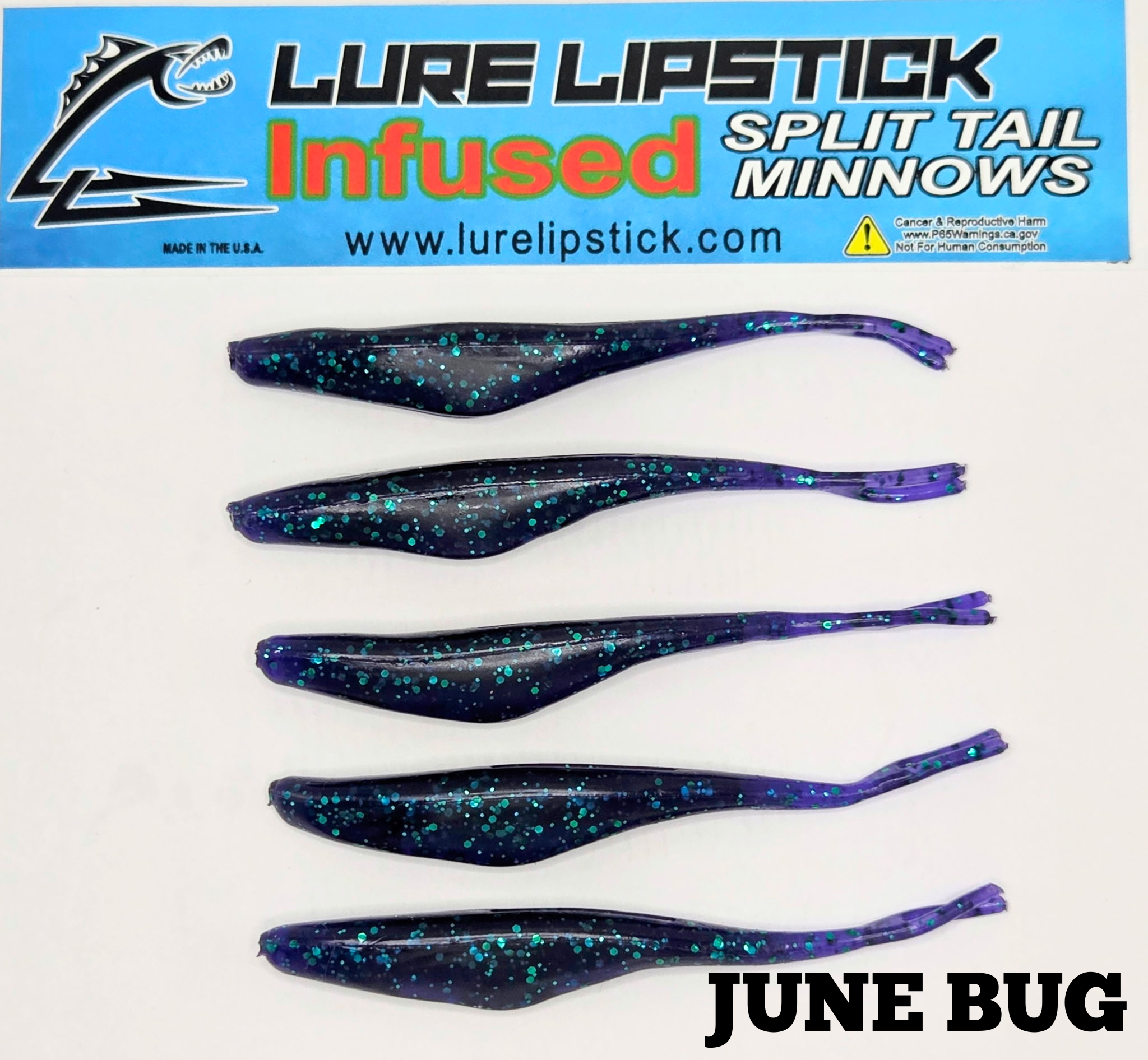 4” June Bug soft plastic jerk shad minnow (5 pack). Infused FFS bait with lifelike action for bass and walleye fishing. Cast it, watch it, and Get Hit On!