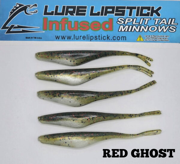 4” Red Ghost FFS jerk shad minnows. Infused, hand-painted soft plastic bait (5 pack) designed to trigger aggressive strikes. Cast it and get hit on!